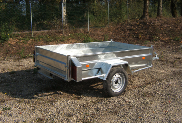 REMORQUE BAGAGEREDe Série- Construction monobloc acier galvanisé- Ridelles embouties augmentant la rigidité- Porte arrière- Plancher tôle galva - Béquille à roue jockey- Feux protégés